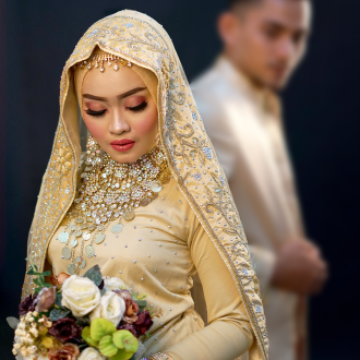 ชุดเจ้าสาวอิสลาม แบบมินิมอล พร้อมผ้าคลุมฮิญาบ